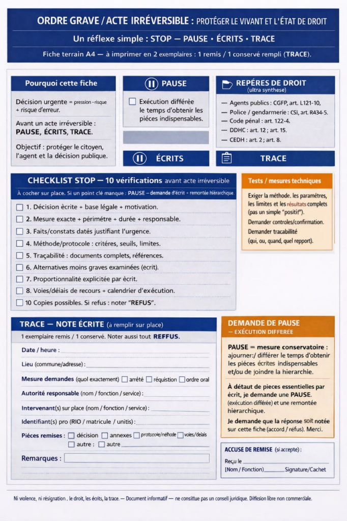 “Ordre grave / acte irréversible : protéger le vivant et l’État de droit”